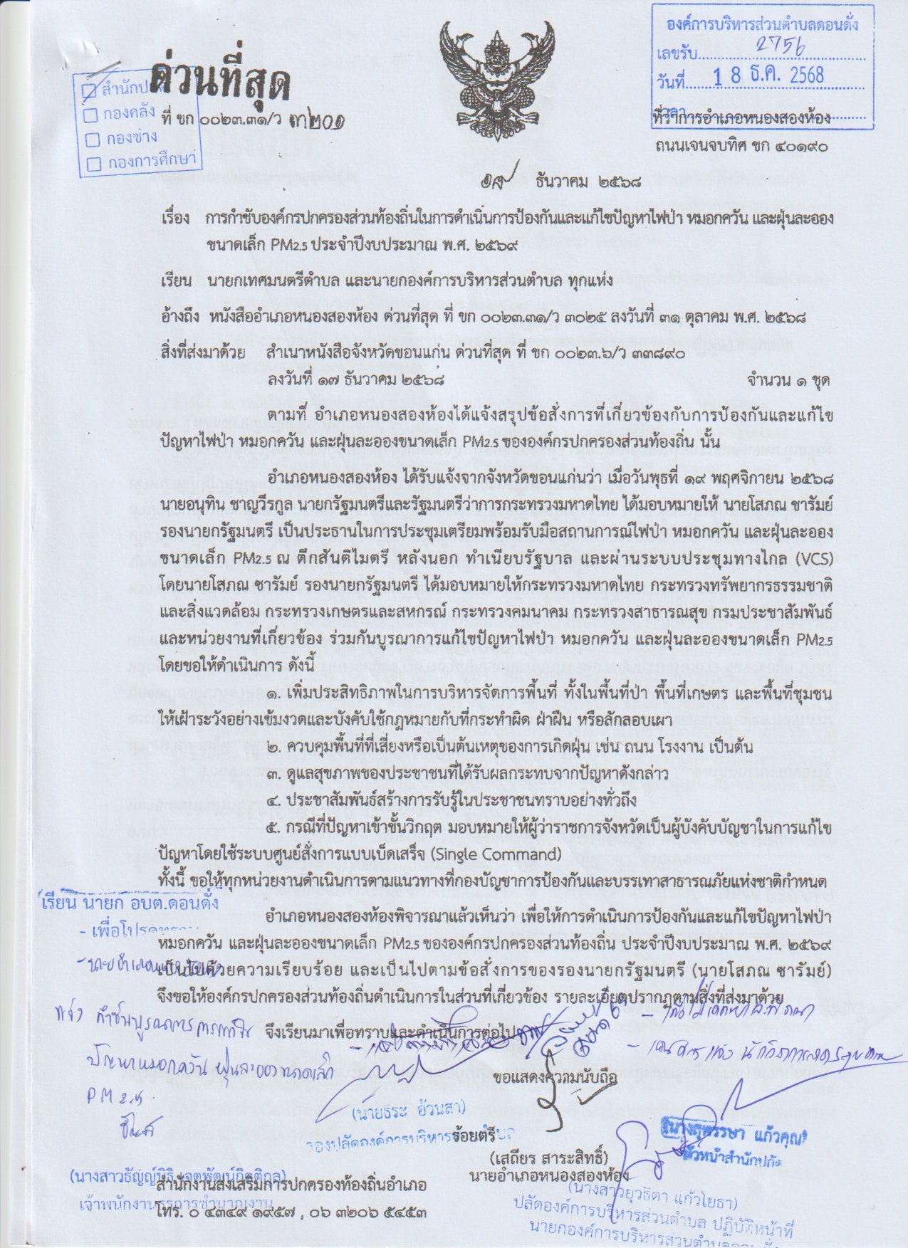 การกำชับองค์กรปกครองส่วนท้องถิ่นในการดำเนินการป้องกันและแก้ไขปัญหาไฟป่า หมอกควัน และฝุ่นละอองขนาดเล็ก PM 2.5 ประจำปีงบประมาณ พ.ศ. 2569 |